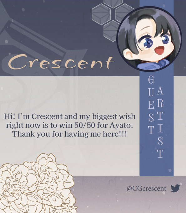 It is with great pleasure we announce our next guest page artist, @CGcrescent! Here's to the gacha gods being kind to Crescent—we're wishing them the best of luck on their pulls! 🌠