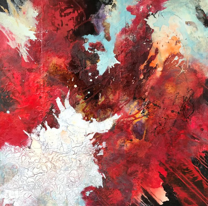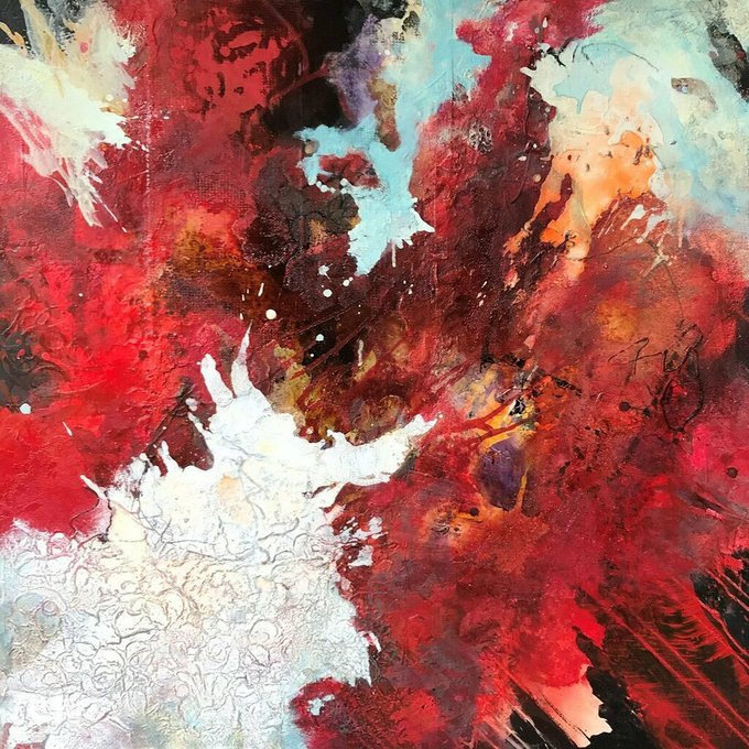 Abstract red square. 1m x 1m, acrylic and collage on canvas... https://t.co/CR5eBzBilG