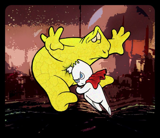 @k4gatsu @Robots_and_Such Miguel GORILLA Lopez former animator & character designer for The Simpsons and Family Guy... always open for commissions & over 30 years of experience! Here's a lil sample of our our recent artwork of #SPORKY 👽🛸👽