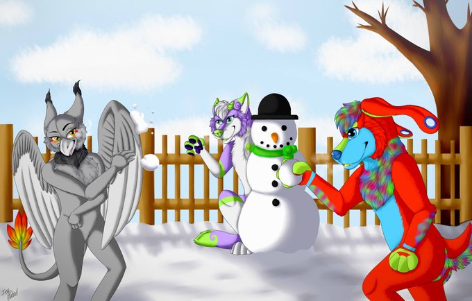 A HUGE thank you to @IvyPetalFur for this cute piece of me, her and @BaxDrool having a snowball fight this Christmas!