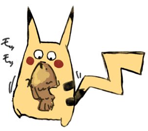 あへんを薦めるピカチュウと たい焼きを食らうピカテゥ