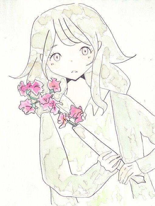 スイートピーを持って #女の子 #イラスト #スイートピー #創作 #水彩 #イラスト好きさんと繋がりたい #絵描きさんと繋がりたい