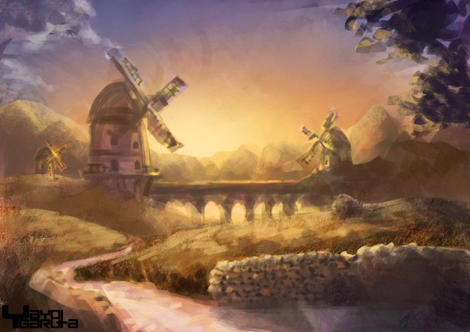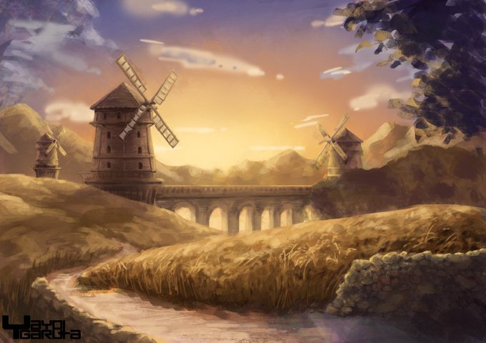 【画像版メイキング】「黄昏の風車」 先日に引き続き、某所で動画形式の投稿ができなかったため作った画像版メイキングです。2019年の作品🎨