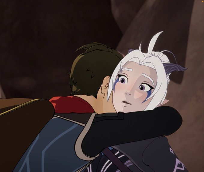 Just Callum quickly hug Rayla as a relief that she is safe and couldn't lose her again no matter how to conflict their relationship 🥺😭