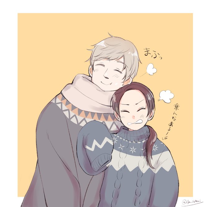 紅色同志 / セーター 露様は耀さんに頭を乗せるのが好きそう。 #王耀版深夜の真剣お絵描き60分一本勝負 @wang_yao_1draw
