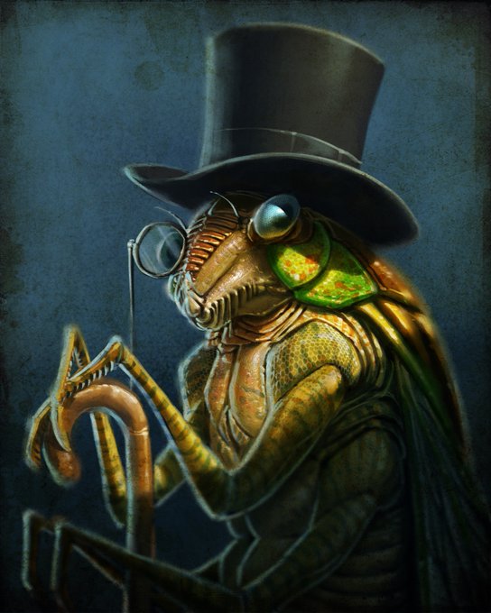 Had a great Live Stream today. I found a dead Cicada and decided to use it as inspiration for a creature. The top hat, cane, and monocle were audience ideas. It was fun to collaborate!