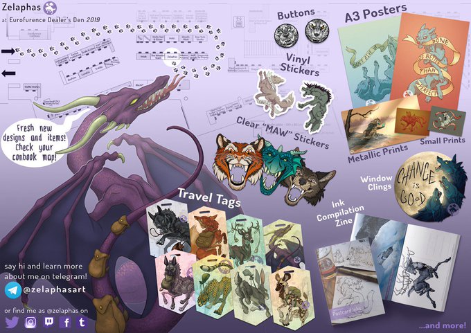 Great things come in threes! Three new A3 posters and three new travel tags will be debuting at my #eurofurence table this year. Which ones do you plan on adding to your collection?