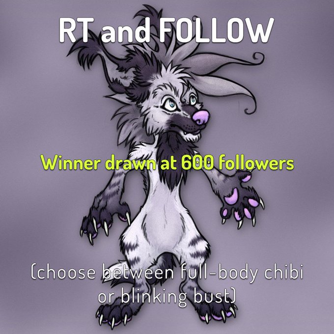 Let's get me to 600 followers, shall we? RT+Follow, once at 600 I'll draw. Winner gets chibi or blinking bust (animated)! Thanks in advance!