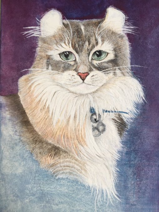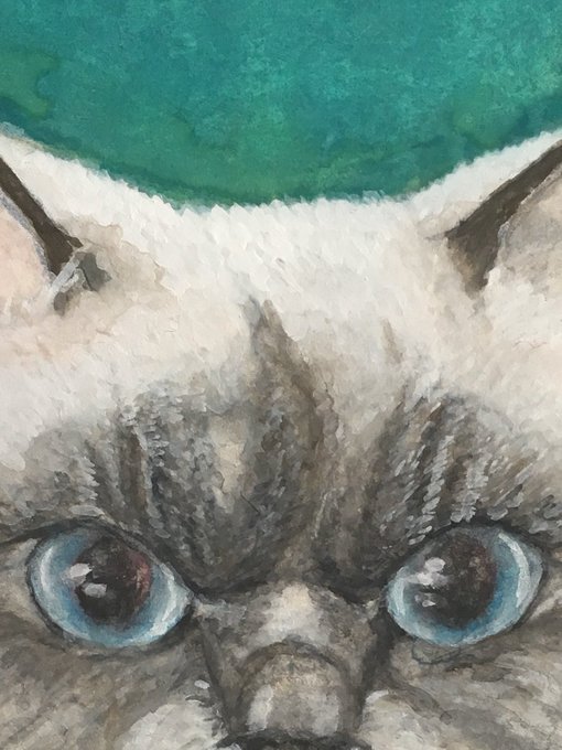 今日半日、頑張って描いたけど、瞳を入れたら オトメ顔に…😓 ゴマは、雄猫だ! 違うんだなぁ〜💦 遠目で見ると、全然ゴマじゃない…