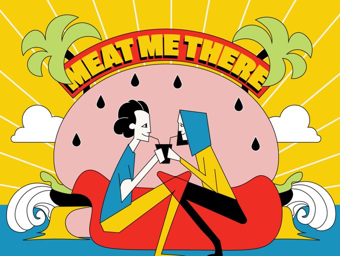 it's for a Joyce package for a restaurant " Meat me there #illusteation #branding #packaging