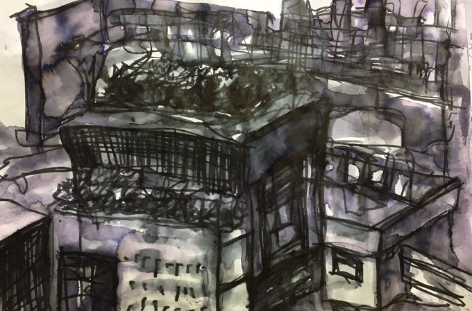 drowing 酔い道 entrance 高架下