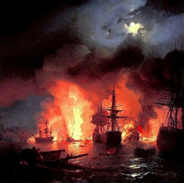 معركة ليلية "Battle of Cesme"1848 Aivazovsky