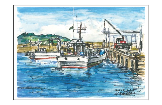 今回も漁港の絵です。
