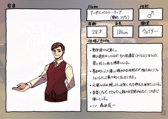 #みつヴィナ_CS ウェイターのアディ君です。 よろしくお願いしまーす。 後で手直しするかもしれないので(仮)で。 何かあればDMまでどうぞ〜✌️