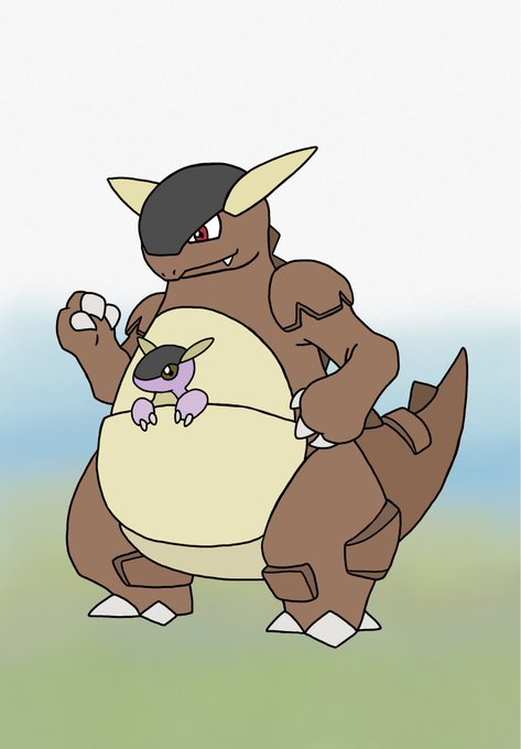 #Apple #art #drawing #sketch #pokemon #pikachu #anime #Kangaskhan #mother #baby #khan #kangaroo