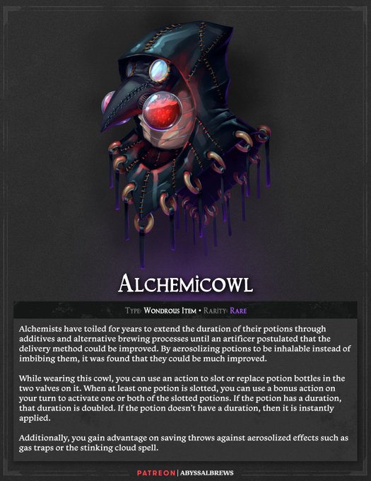 AbyssalBrews is a team of two creating weekly magic items and more for 5E.