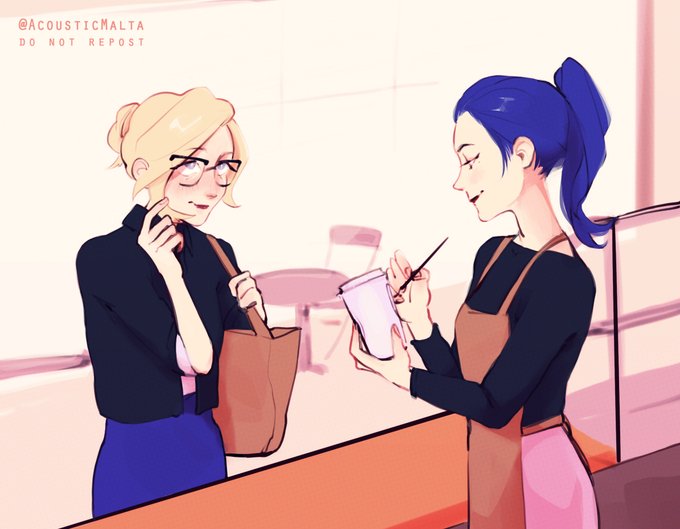 Mercymaker Week - Day 1: Coffee Shop AU ☕️ Angela likes coffee (and one barista).