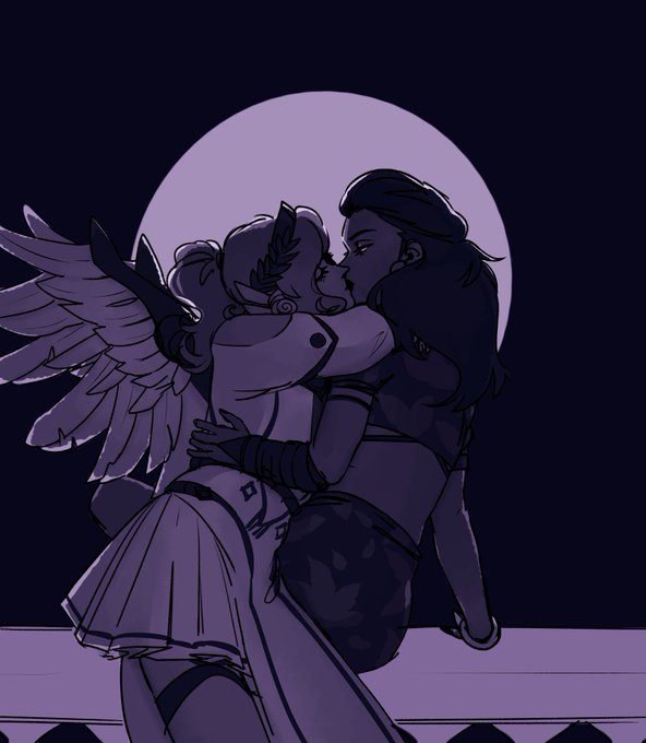 Illustration for "What If I Fall" #mercymaker fanfic by @mizzzles. Please go read!! 💜💛-> https://t.co/KYd7prhNmC #overwatch