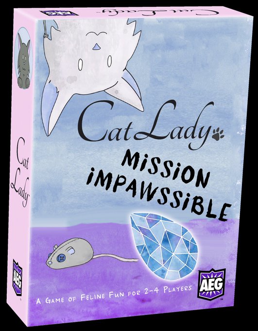 The video of me interviewing @sirjoshwood wont' be done for a while but I did get to mock up these fake Cat Lady expansions and they make me very happy.