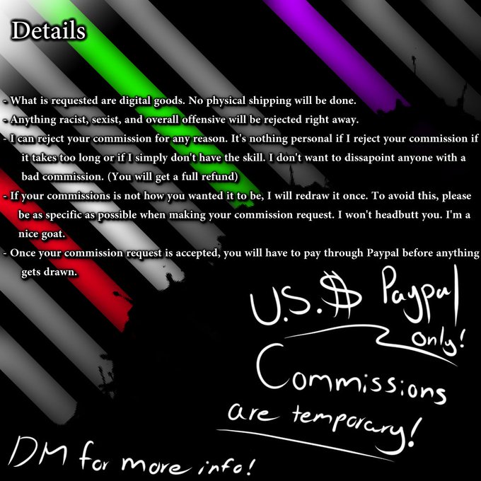 Commissions are open but with limited slots. Message me for more details.
