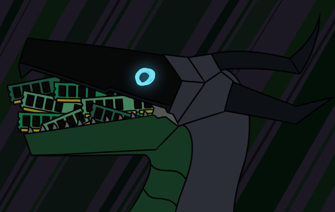 I decided to have a go at drawing @Ahndrek_LiCyri 's robot dragon eating a bunch of RAM. I think the results turned out quite well.