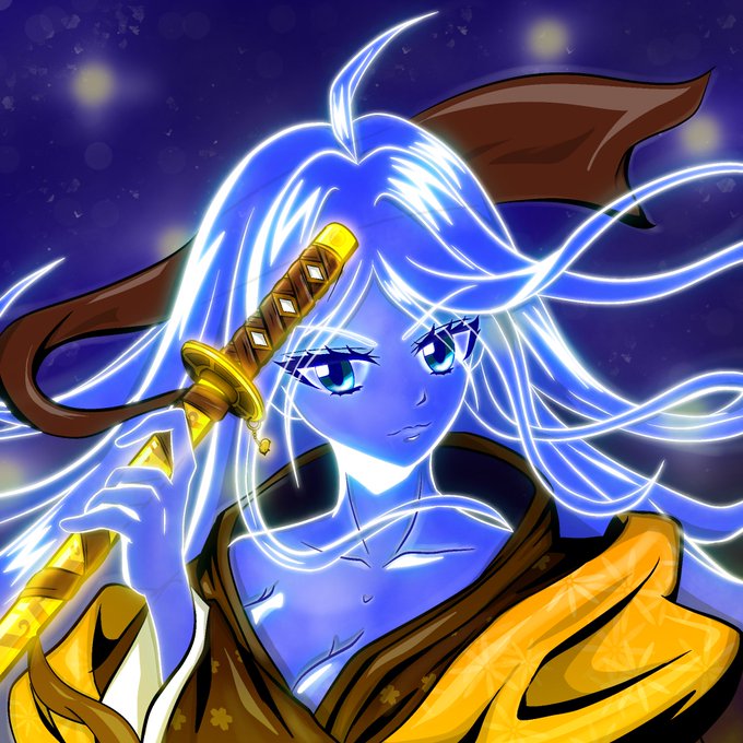Between her facial expression, the glow of her blade and the lightning crackles that appear to blend into the night sky, it’s hard to name a particular favorite amongst the many aspects of this piece. I can say however that this PFP is full of elegance!