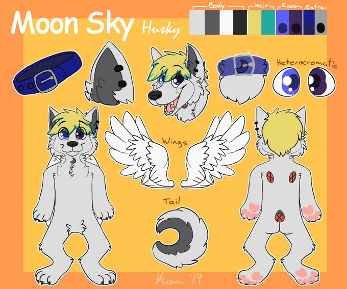 First attempt at fursona fusions! Meet the lovely Air Sky 💕She is a result of fusing our sweet summer child with The lovely pupper @Moon_Sky_04 ! Flying her way to give you cuddles! 💕
