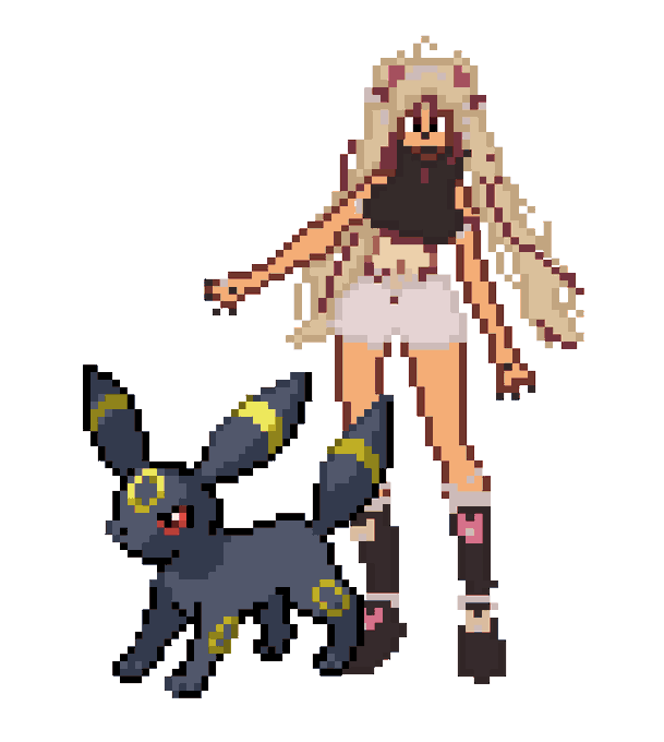After seeing this outfit, the poses, and reading that Umbreon was your favorite Pokemon, I had to give this a try! I haven't done pixel art before #vioreillust