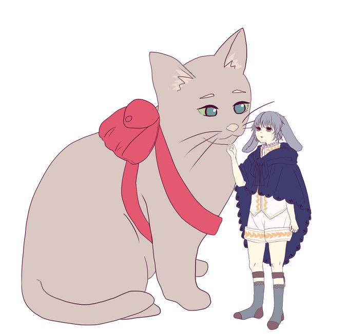 たれ耳うさぎのラスと、なんやかんやで大型猫獣にされてしまった彼の兄 兄に乗って移動することがほとんどで、靴を履くのをよく忘れるラス。もしものために、兄のカバンの中に予備の靴が入っているという設定。