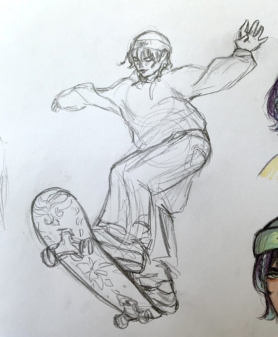 Venti as a skater boi and in a mullet 👉👈🥺 #Genshin #genshinimpactfanart #ArtistOnTwitter #sketch