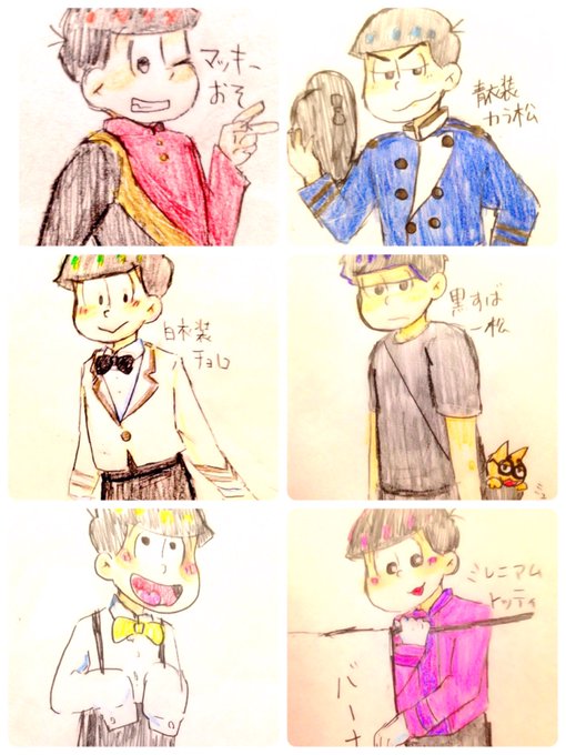 F6一松かいた!おそ松ハマるまでしばらく絵描いてなかったから、自分絵と言うのが無くてどう描くかマヨイングー🙄 絵柄変えて二つかいたけど改めて見るとそんなに変わってない…