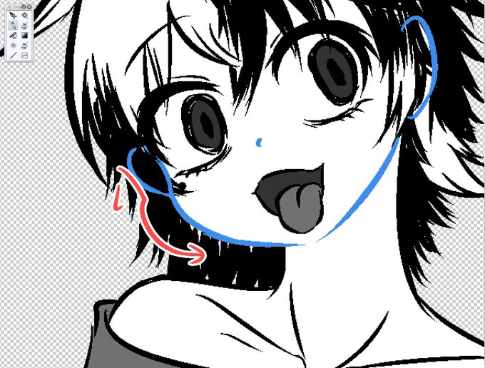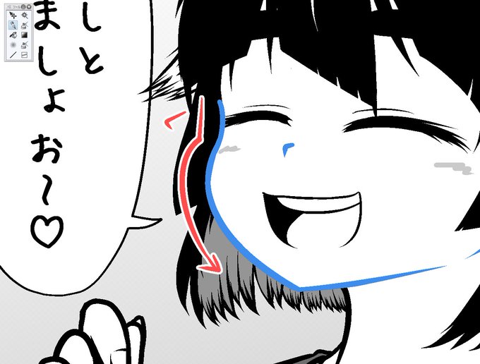もうこの輪郭の描き方に定着しようかなと、始めました "ら"みたいな描き方