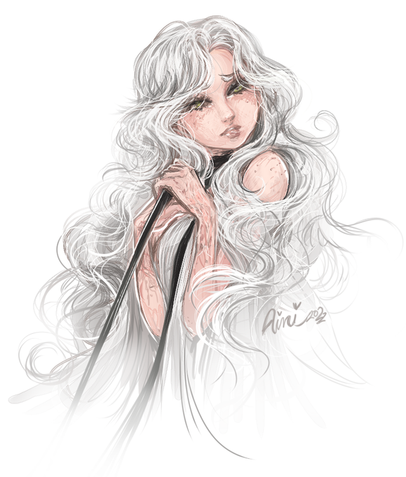 I can't contain my excitement! The AI gave her BAT WING SHAPED BANGS!!!