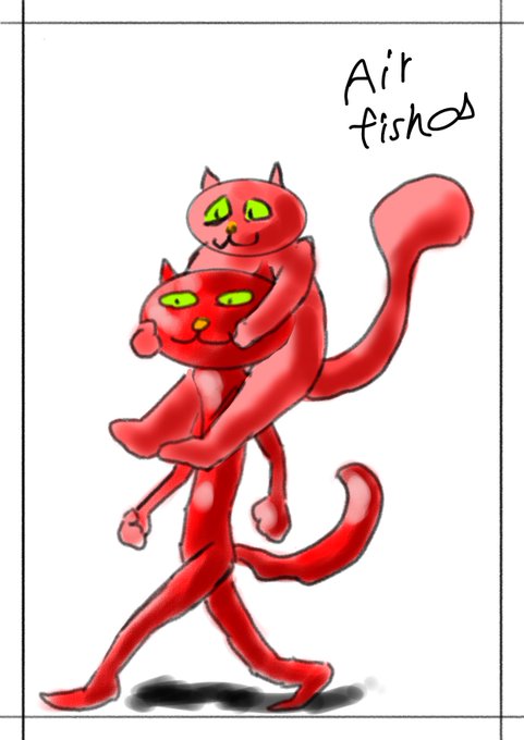 #イラスト #illust #創作 #絵 #落ち描き #落書き #rkgk #猫 紅の猫🐱とチビ猫🐱