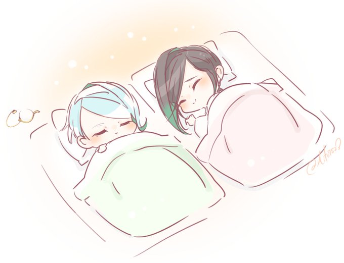 お題『お布団』 静さん『寒くて布団から出られん…』 巴さん『静形、温かい茶を用意した。これで身も心もぽかぽかだ』 静さん『…うん……頑張って起きよう…』 #週一静形薙刀ワンドロ