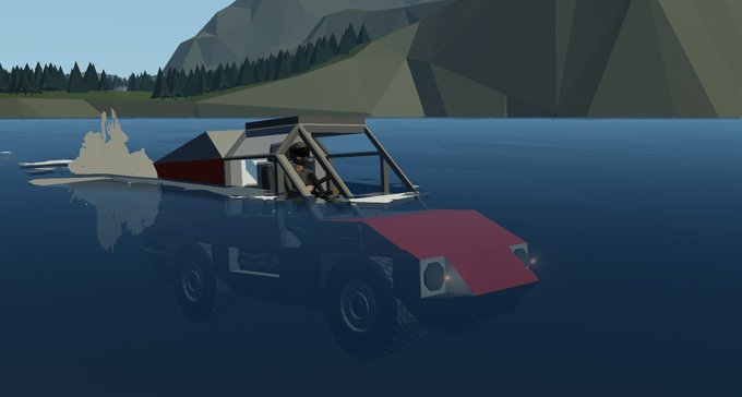 陸も海もいい感じに走れる上、車体後部にはウィンチも装備しているので車両救援もできるぞ!(1気筒エンジンでカバーできる範囲に限る) #Stormworks