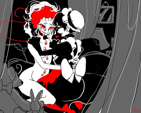 お題【涙】 「お嬢さま、涙が止まるまで、あと少しです」 #傷もの版深夜の真剣お絵描き60分一本勝負