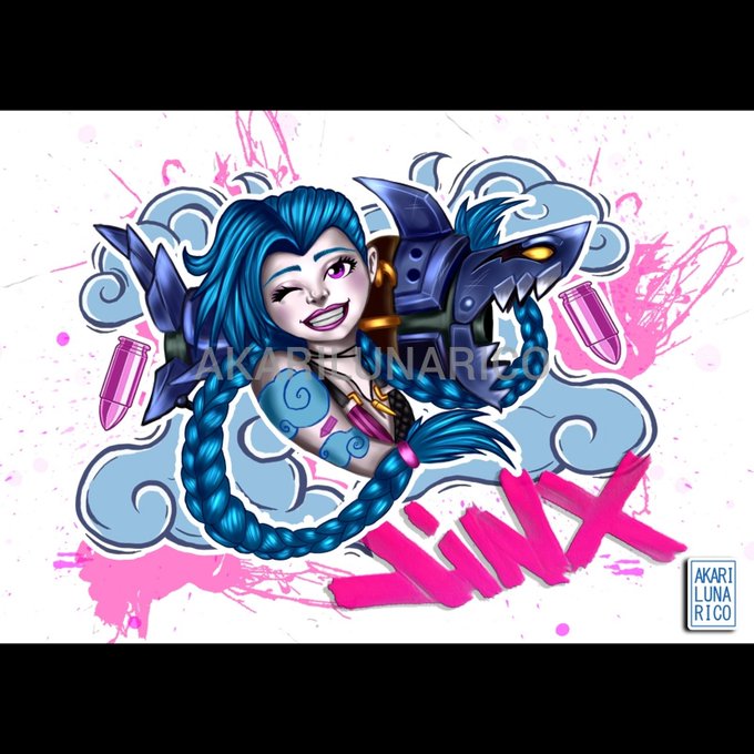 Hola! Aquí os traigo está ilustración que hice de Jinx, hoy acabó @arcaneshow y estoy tal que así 😭😭😭😭😭