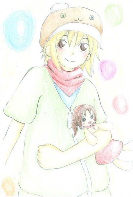 @umina_krm フォルダにあるのこれが一番過去!支部最初の作品だよー3年半前。当時は色鉛筆でせっせと練習してた! ちなみにリメイク前のノノ君です