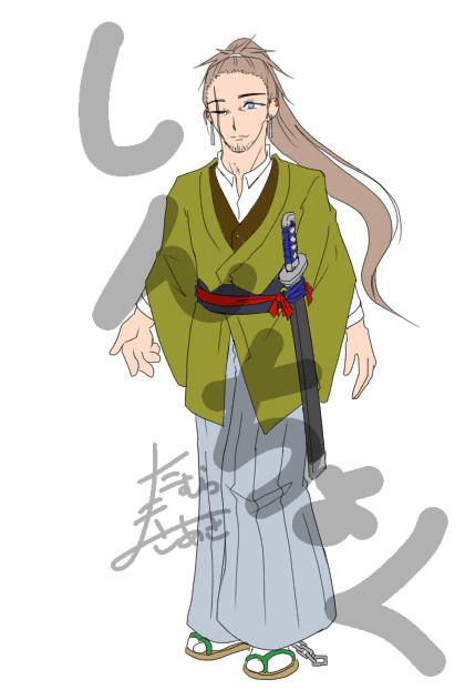 フォロワーから仕事人っぽいて言われたのでそれっぽく、かつ風属性っぽく。よその子とカラーリングが似通らないように…って(うっかりやらかしそうなので)