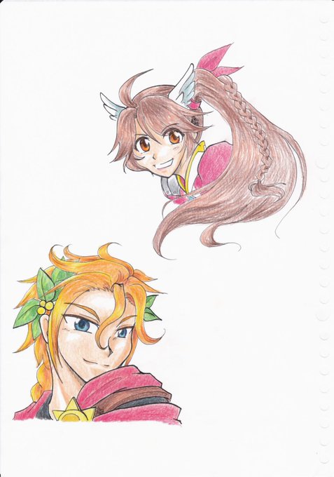 無性に描きたくなって描いたヒルドちゃんとスペース余ったのでアポロン君。色鉛筆で塗りました。 #ゆるドラシル #ゆるドラシルファンアート #色鉛筆 https://t.co/Xt5Ssnv8UQ