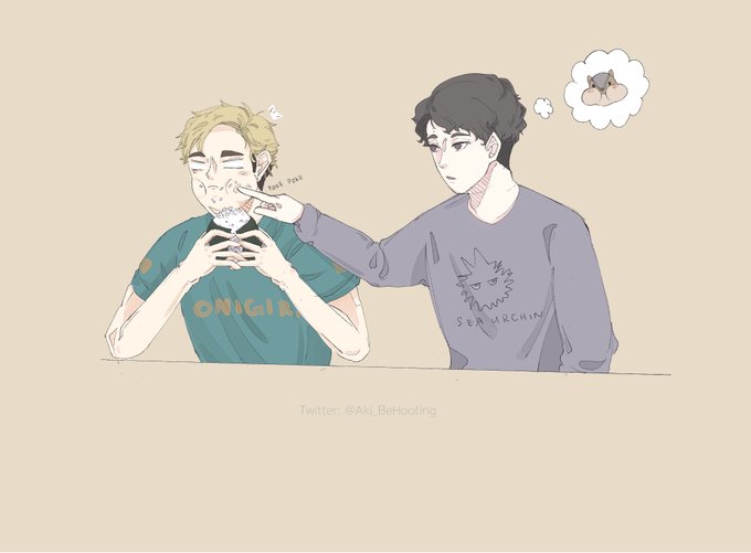 Atsumu's cheeks look so squishy when he's eating Osamu's onigiri so I made Sakusa poke them #sakuatsu