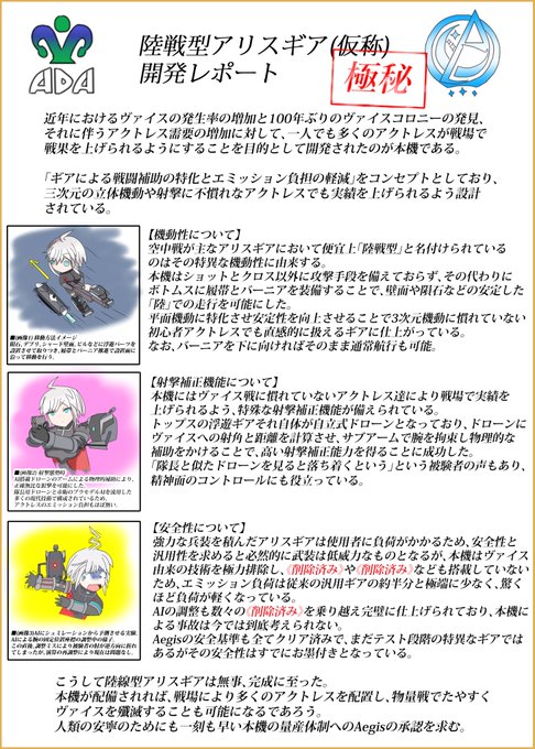 オリアクの海原猽ちゃんとオリギアが完成しました!!! 陸戦が無いアリスギアにおいて"陸戦型"をこじつけてみたかっただけです 絵を描くよりおまけのつもりで書いた怪しいレポートの方が時間かかった・・・