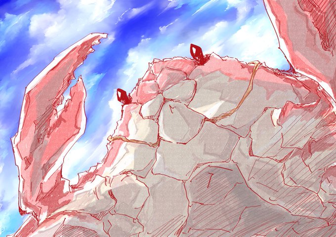 23枚目-アクタガワ🦀 アクタガワの背中に乗ったら きっと絶景が見られる…! という妄想。 足りてない画力は脳内補正で… #錆喰いビスコ #ファンアート