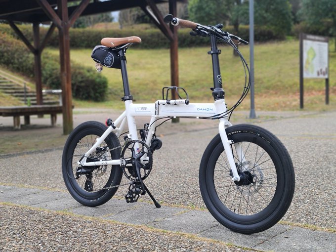 これから理由あって9時間ほど引きこもるから買い出しがてらダホホ出動。近所の古墳公園にて。サドルとグリップは着せ替えた。#DAHON #おりたたぶ