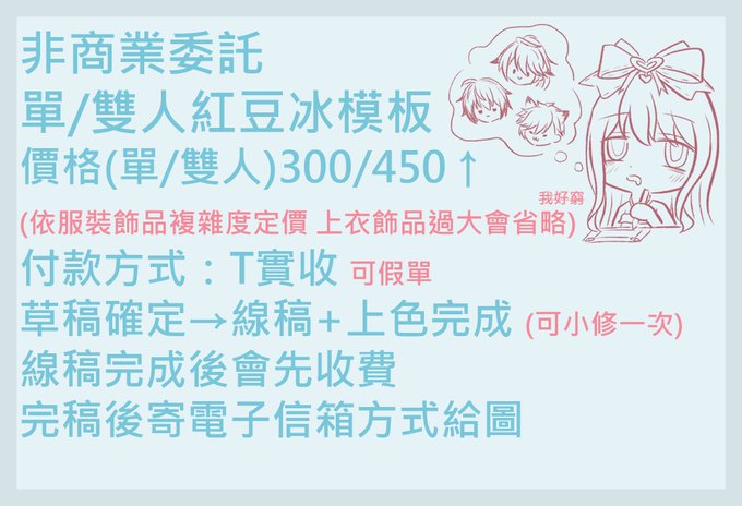 推特也丟上來看看 () 我弄不出價目表 我只有文字圖(好 圖3 4是草稿的樣子 有興趣可以直接推特私我