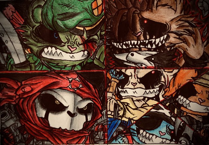Un pequeño dibujo grupal con Xebas,revenant,y los 3 sub jefes disco,russell y handy 🛠🎼🏴☠️✨