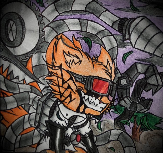 Alan poseído con sus tentáculos mecánicos afuera 🔧⚙️✨