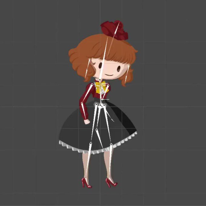 I call Kamiko's cartoony form Chibiko and here is her skeleton as animated in #unity3d with Anima. I added spring bones for her hair and rose and expressions with sprite swapping.
