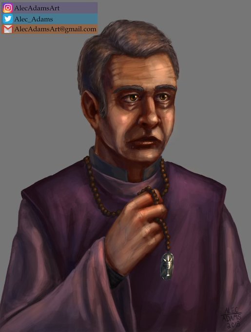 I've been working through a gnarly bout of bronchitis and in between all that coughing I painted this portrait of a priest for that unannounced D&D related project I've been posting about.